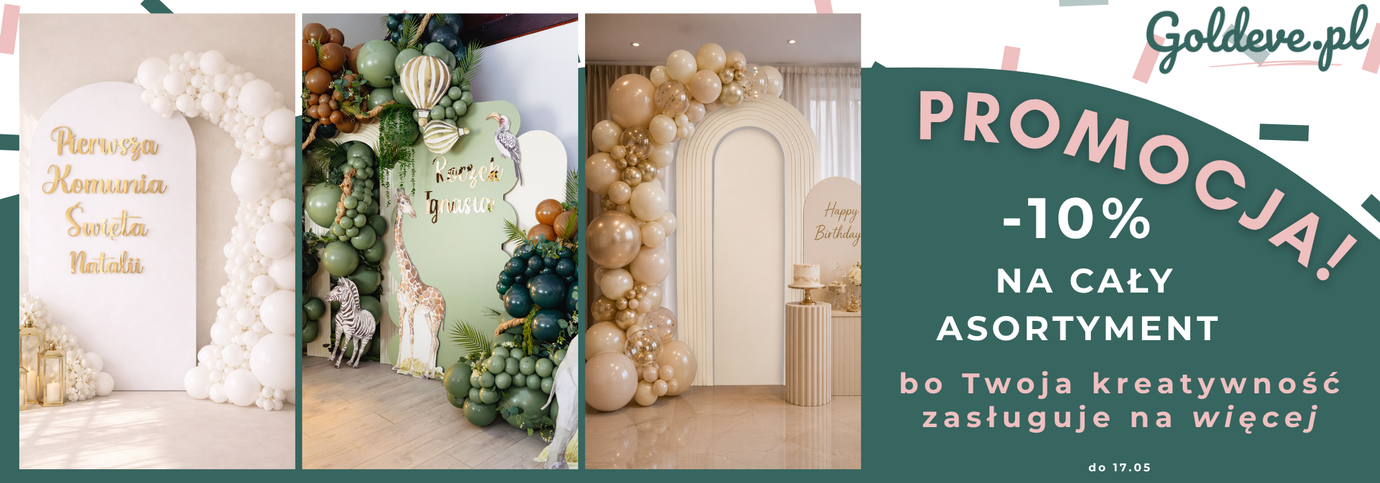 W Goldeve stawiamy na najwyższą jakość i niepowtarzalność. Każda nasza dekoracja powstaje z myślą o tym, by dodać Twojej imprezie pożądanego klimatu. Chcemy, aby nasze artykuły budowały emocje i zostawały z gośćmi na długo.